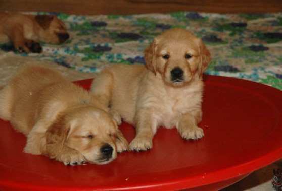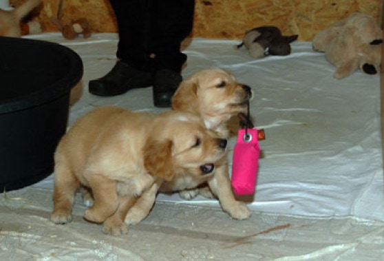 Tara, die selbstbewusste Hündin in unserem Rudel, zeigt schöne Arbeitsanlagen, sie schleppt immer etwas umher. Das Rudel wird durch Tara, ihre Halbschwester Uma und Tara's Tochter Vinnie, gern aufgemischt. Es ist ein Vergnügen mit den dreien spazieren zu gehen und sie beim Toben und Spielen zu beobachten. Tara apportiert sehr gern, ist sehr gehorsam mit einem gesunden Selbstbewustsein. Sie hat einen tollen Ausdruck, einen kräftigen Körperbau und eine sehr gute Fellanlage. Sie hat viel Farbe - ein typischer Golden eben. Es wird Tara's zweiter Wurf sein. Tara hat mit den nachstehenden Ergebissen die besten Voraussetzungen für eine vorzügliche Zuchthündin, wir setzen große Hoffnung auf unsere Tara und ihre Nachkommen.